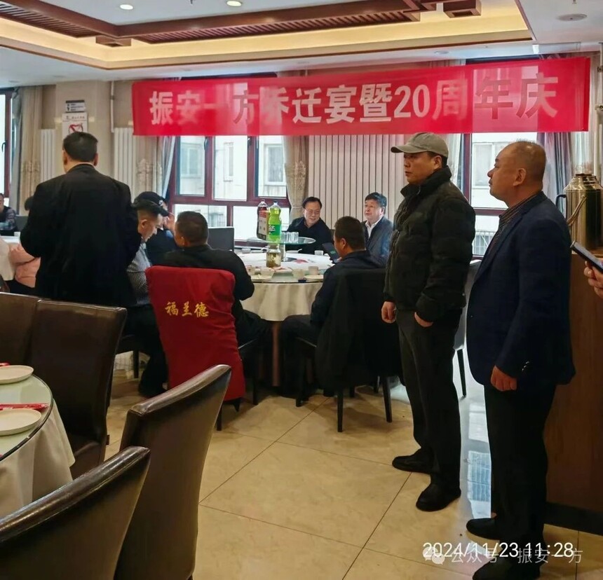 随后,公司安排专人带领嘉宾们参观公司新办公环境。此次,新的办公地点坐落于北京市通州区金融街园中园5号院9楼,交通便利,环境优美。宽敞明亮的办公空间,现代化的装修风格,展现着公司的创新与活力。走进新的办公区域,舒适的工作环境让人眼前一亮,每个角落都体现着振安一方公司文化,预示着公司发展的新篇章正式开启。这里将成为每位振安一方家人们追梦创业的新舞台,激励他们不断拼搏奋进。感恩廿载 共创未来庆典午宴有朋自远方来不亦乐乎。为庆祝振安一方总部喜迁新址,公司精心安排了隆重的乔迁午宴,王燕伟董事长代表振安一方全体同仁感恩莅临庆典的各位领导、同仁及社会各界朋友们,并送上最诚挚的祝福。20年风雨兼程,振安一方始终不忘初心,砥砺前行。在此,北京振安一方保安服务有限公司衷心感谢社会各界一直以来的关心与支持,感谢全体员工的辛勤付出与不懈努力。我们将以全新的姿态、更专业的服务,回馈客户的信任与厚爱,携手各界伙伴共创更加美好的未来。